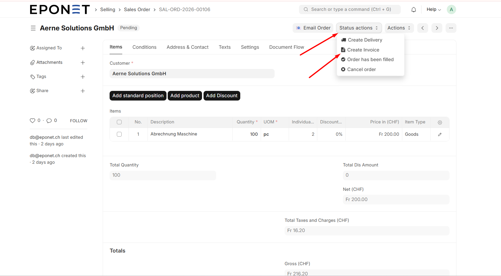 • Öffnen Sie den Kundenauftrag – Navigieren Sie zu dem Kundenauftrag, für den Sie eine Rechnung erstellen möchten.